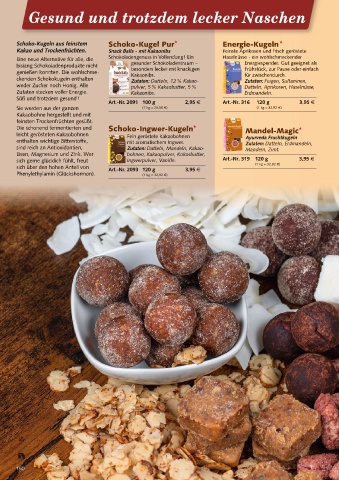 ckenden Schokokugeln enthalten Zutaten: Datteln, 12 % Kakao- Zutaten: Feigen, Sultaninen,