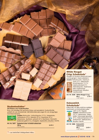 Art.-Nr. 3697 Studentenfutter Vollmilchschokolade Art.-Nr. 3686 Kokosmilch