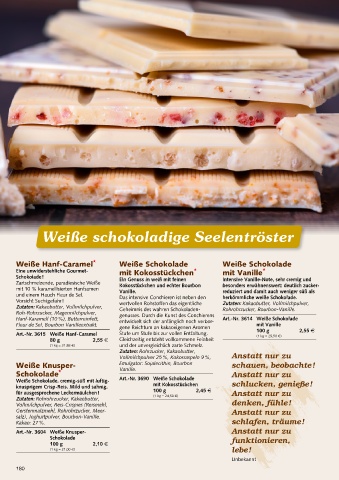 Hanf-Karamell (10 %), Butterreinfett, entwickelt sich der anfänglich noch verbor Art.-Nr. 3614 Weiße Schokolade