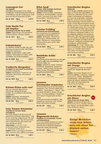 Art.-Nr. 955 50 g 2,95 € angenehmer Geschmack nach Fenchel, Zutaten: Griechischer Bergtee (36%),